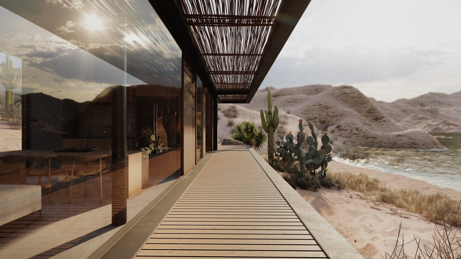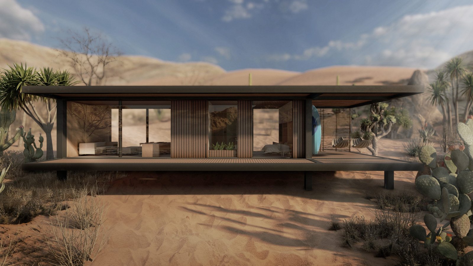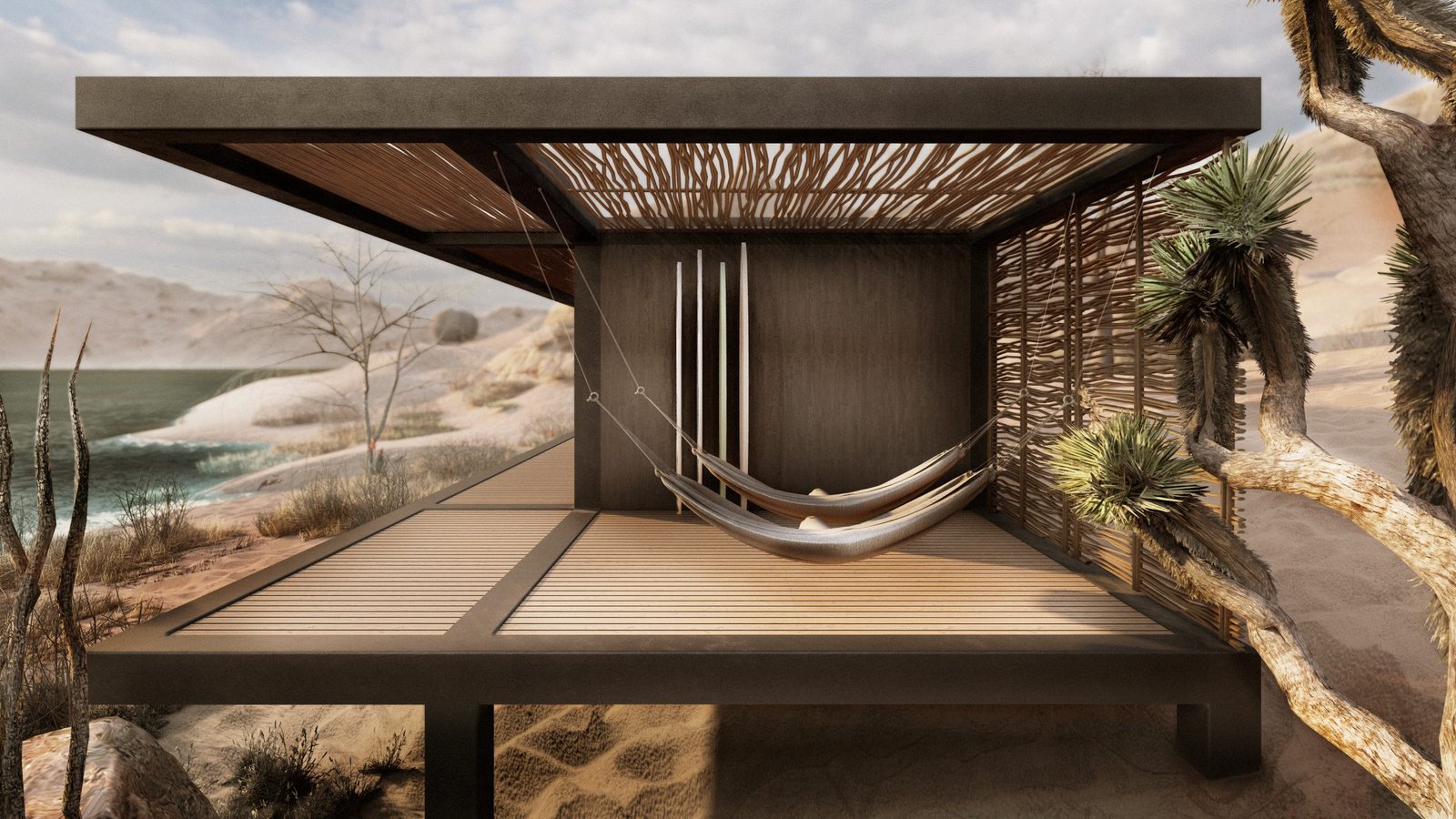 Un espacio para sentir el sol y la arena dorada de la Guajira, un refugio para vivir el aquí y el ahora, donde el tiempo corre como las corrientes de viento a través de la caña brava y el mar canta vallenatos. Es aquí en esta cabaña donde los sueños de nuestro cliente se hacen realidad, entre la simplicidad del espacio y la belleza del paisaje.