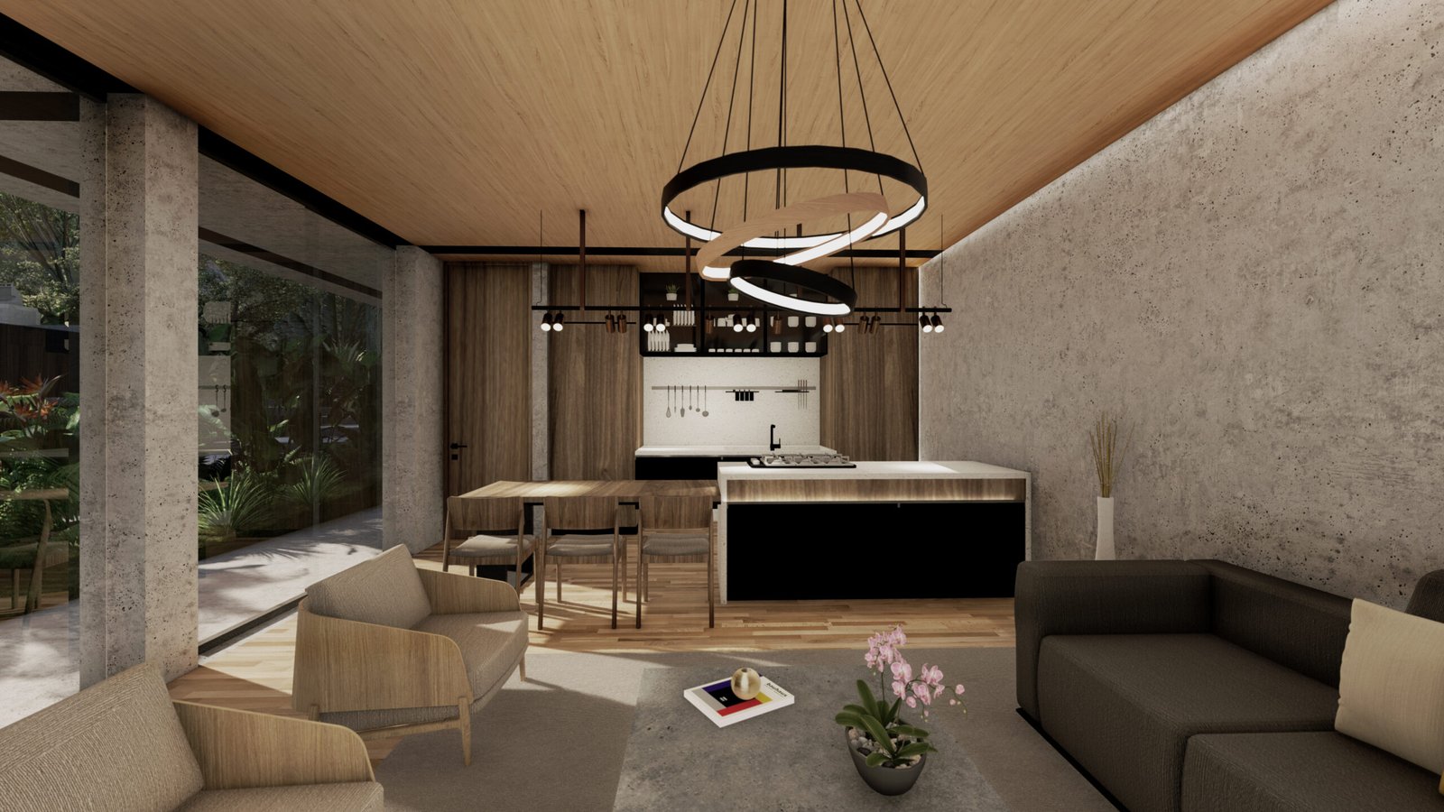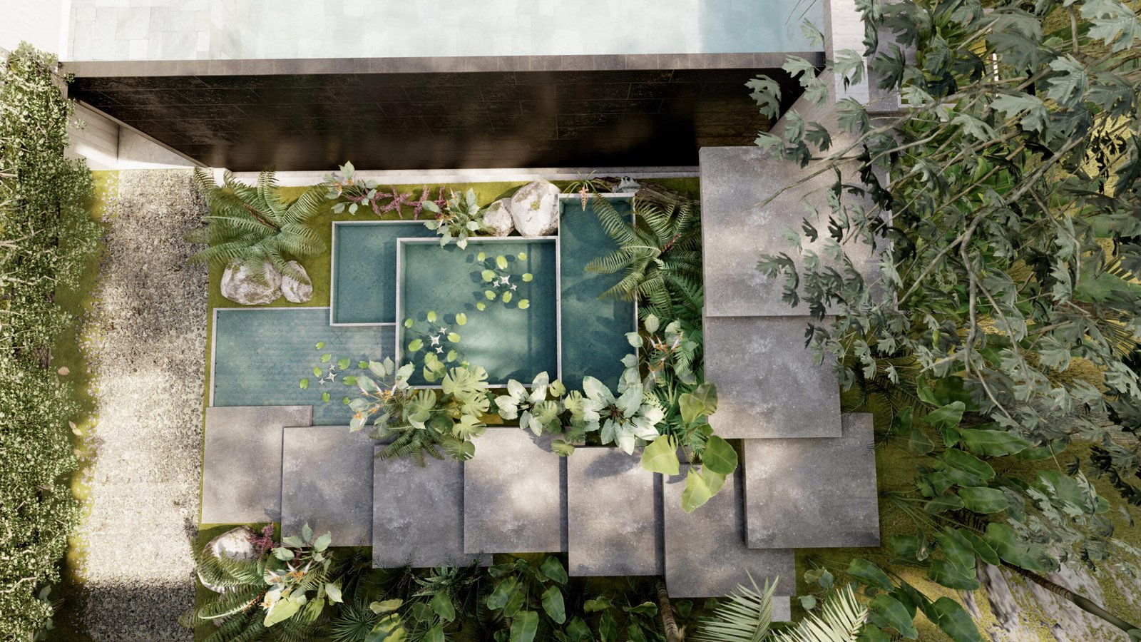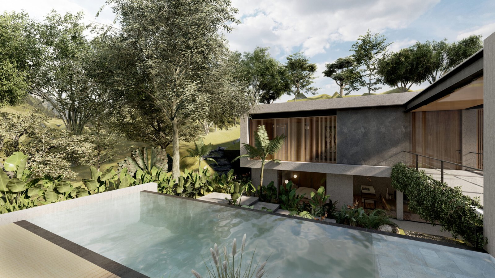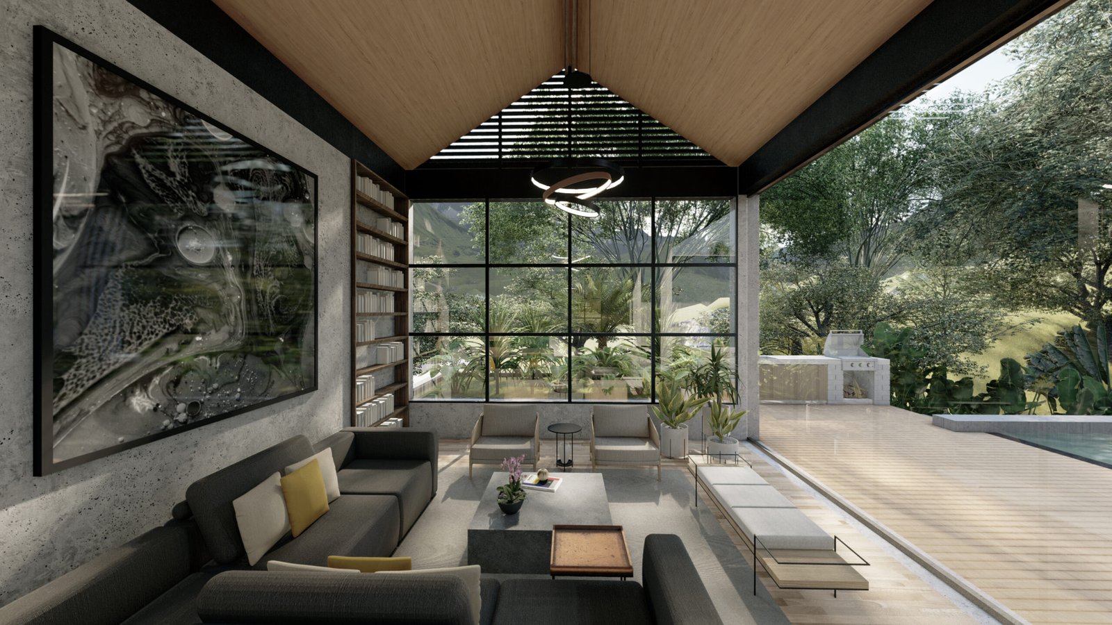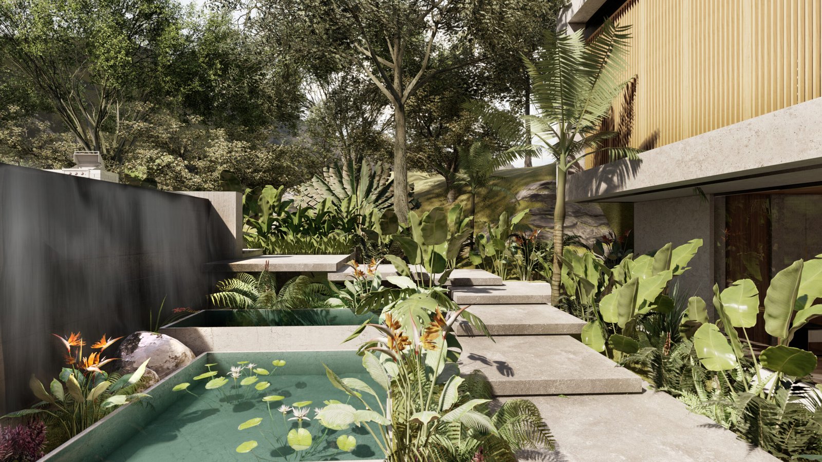 La casa puente se convierte en la conexión de la familia con su contexto y con su mundo interior, se plantean dos volúmenes, el primero donde se desarrolla toda el área social y servicios, en el segundo volumen se encuentran las habitaciones y espacios más privados, ambos volúmenes miran hacia un bosque central donde fluye el agua y la naturaleza y se le da el protagonismo necesario a las fachadas internas de ambos volúmenes estos a su vez se conectan a través de un puente que no solo es el alma de la casa si no un espacio de convivencia y estar.