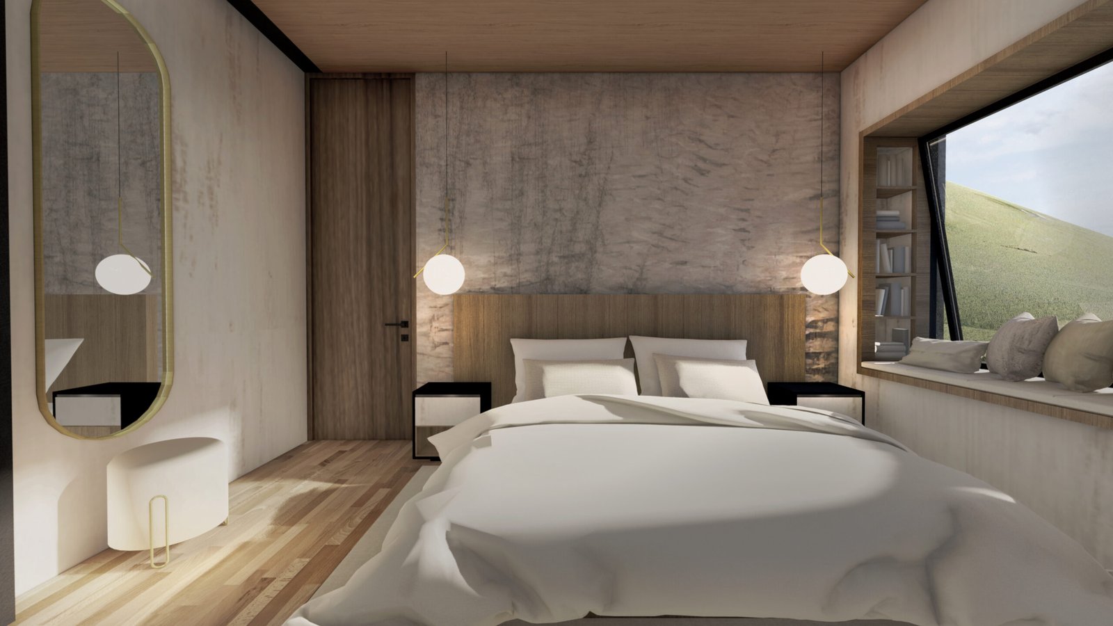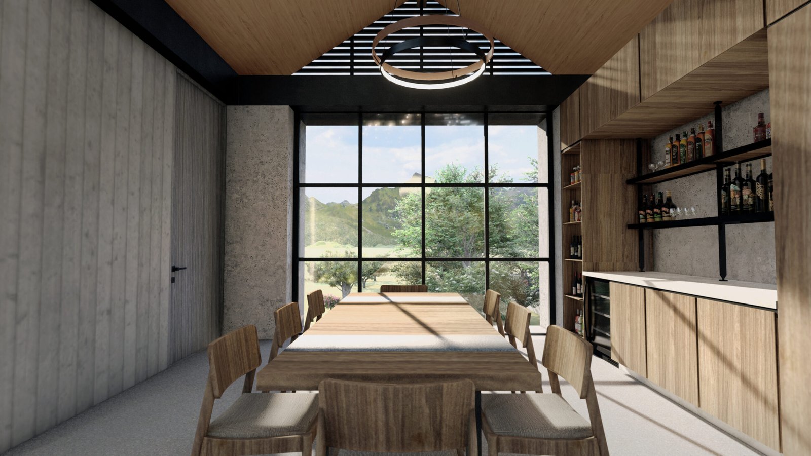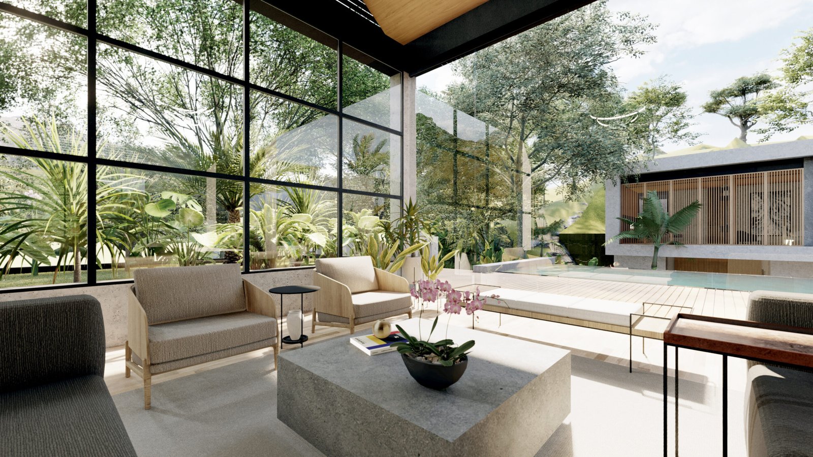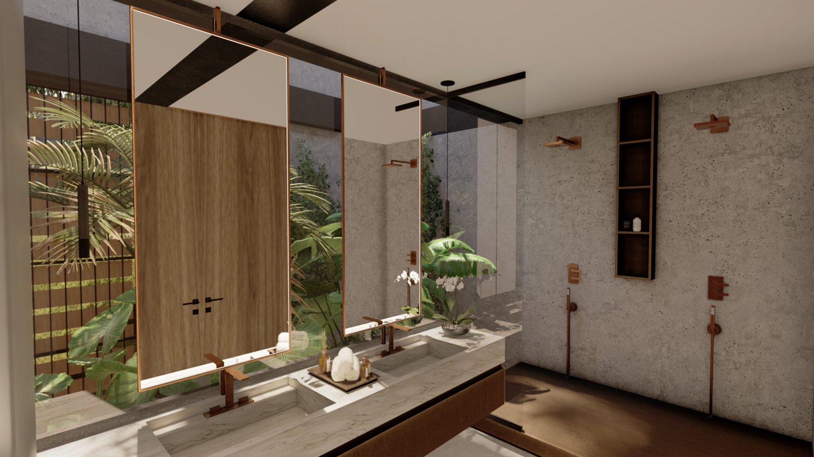 La casa puente se convierte en la conexión de la familia con su contexto y con su mundo interior, se plantean dos volúmenes, el primero donde se desarrolla toda el área social y servicios, en el segundo volumen se encuentran las habitaciones y espacios más privados, ambos volúmenes miran hacia un bosque central donde fluye el agua y la naturaleza y se le da el protagonismo necesario a las fachadas internas de ambos volúmenes estos a su vez se conectan a través de un puente que no solo es el alma de la casa si no un espacio de convivencia y estar.